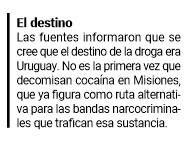 Tags: #CONTRABANDO#Narcotráfico#Paraguay#PosadasCocaínadrogaEncarnación
