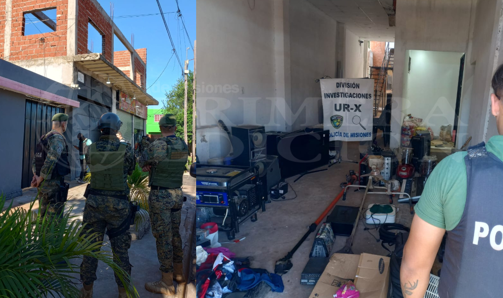 Un importante allanamiento se llevó a cabo este miércoles por la mañana en el barrio A 3-2 de Posadas, donde personal policial de la Dirección de Investigaciones de la Unidad Regional X, y los grupos especiales GOE e Infantería desbarataron un aguantadero de elementos robados.
