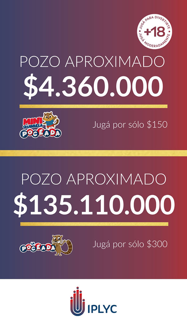 Cabe recordar que también se encuentra vigente la Mini Poceada, cuyo pozo está en $4.360.000 y el ticket cuesta $150.