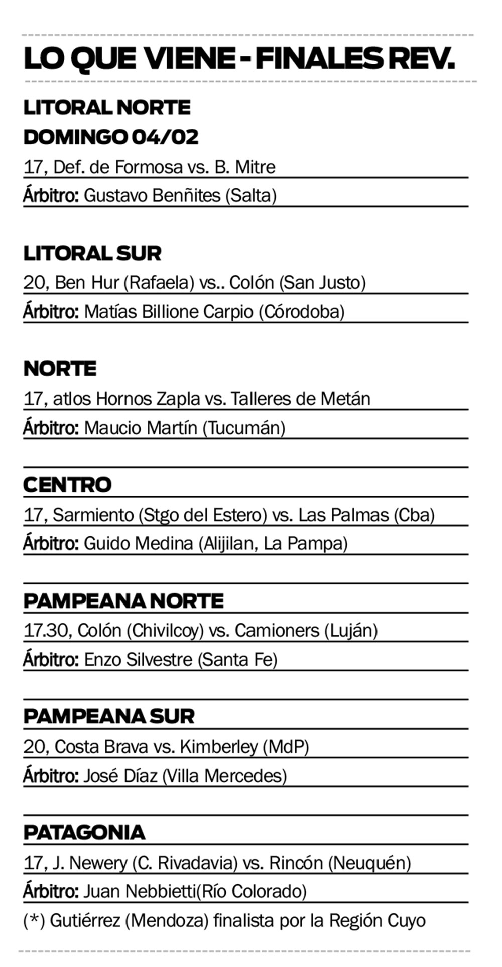 Por otra parte, el Tribunal de Disciplina del CF le dio por ganado el partido y la serie de la final Cuyo a Gutiérrez de Mendoza sobre Juventud Alianza (San Juan).