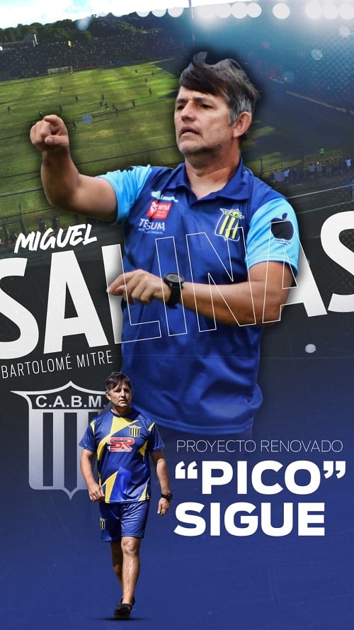 La dirigencia del club Mitre de Posadas confirmó la renovación del contrato de Miguel “Pico” Salinas al frente del plantel de primera división del Auriazul.