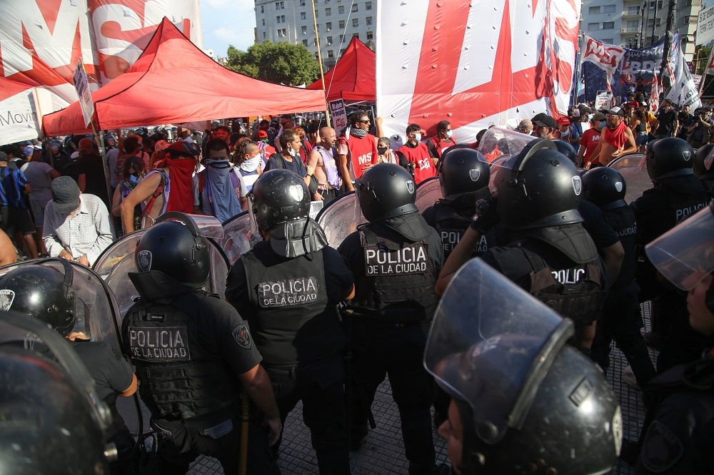 Escenas de extrema violencia se vivieron cerca de las 21, cuando un grupo de motos de la Policía Federal comenzó a moverse en círculos en la esquina de Entre Ríos e Hipólito Yrigoyen.