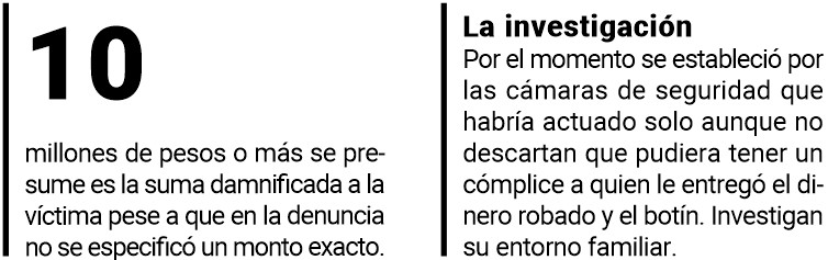 En el robo, de acuerdo a la denuncia en su momento de un comerciante de 38 años, especializado en el rubro automotor (venta de repuestos y reparaciones), se llevaron un maletín negro con una buena cantidad de dinero en efectivo discriminada en pesos argentinos, reales y dólares. En cuanto al monto exacto, no pudo especificar la cantidad que tenía en aquel entonces, pero se estima que más de 10 millones de pesos, según una fuente en contacto con este Diario.