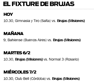 Si bien quedó libre en la primera fecha, ahora Brujas se prepara para días intensos, pues se viene una seguidilla en la Zona 1. El primer encuentro se cumplirá hoy, a partir de las 10.30, y su rival será Gimnasia y Tiro de Salta.