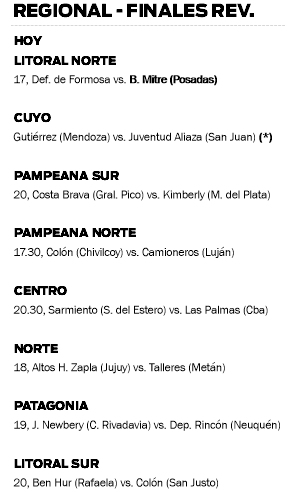 -Los cruces de las cuatro finales por los ascensos al Federal A serán entre los ganadores de las regiones Patagónica vs. Litoral Sur, Pampeana Norte vs. Pampeana Sur, Litoral Norte vs. Cuyo y Centro vs. Norte.