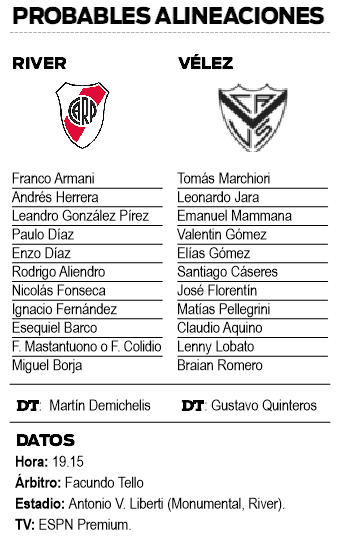 River Plate, con un rendimiento irregular en el inicio de la Copa de la Liga Profesional de Fútbol (LPF), recibirá hoy a Vélez Sarsfield, por la tercera fecha de la Zona A.