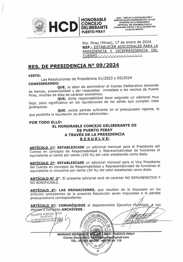 Mientras que Nación dice “No hay plata”, en el Concejo Deliberante de esta pequeña localidad al norte misionero, el presidente del cuerpo y el vice se aumentaron jugosamente los adicionales de la dieta por una resolución de ambos ediles, y podrían desfinanciar la ordenanza presupuestaria ya aprobada para 2024.