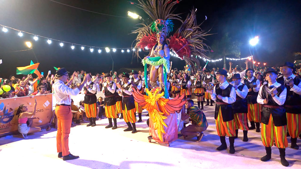 Sin embargo, la primera en salir a escena fue Villalonga, una comparsa de Garupá que llegó como invitada para sumar a las tres que identifican a la “Ciudad de las Flores”.