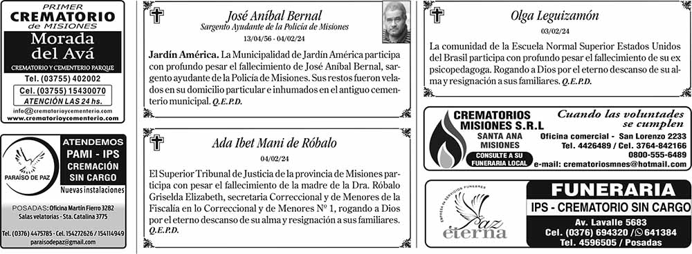 Fúnebres del Martes 6 de Febrero de 2024