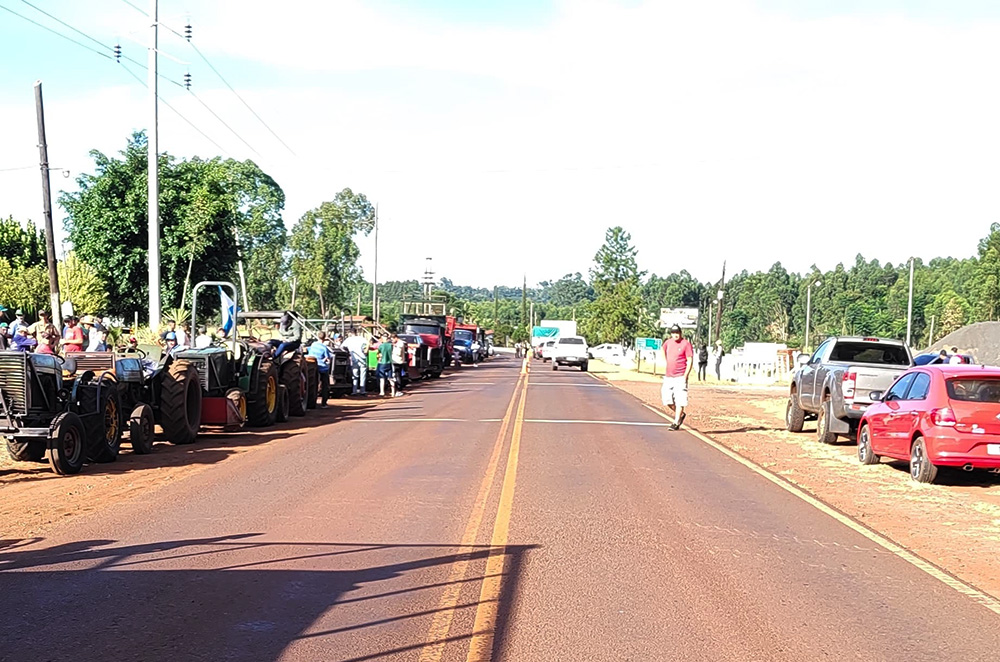Tractorazo en Andresito en adhesión al pedido de yerbateros por el kilo de la hoja verde