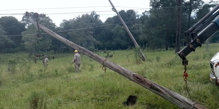 Pese al intenso calor registrado en los últimos días, este martes por la tarde un brusco cambio en el clima, con fuertes ráfagas de viento que afectaron el tendido de la línea de 33 KW y de 13,2 KW en la zona del Paraje Chepoyá y Santa Rita.