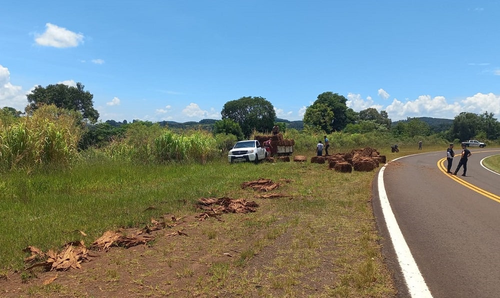 Eso sí: el siniestro vial provocó problemas en el tránsito por la zona, ya que producto de la maniobra inesperada, un cargamento de aproximadamente 400 kilos de tabaco que iba a bordo del vehículo cayó y quedó desparramado por el asfalto y la banquina.
