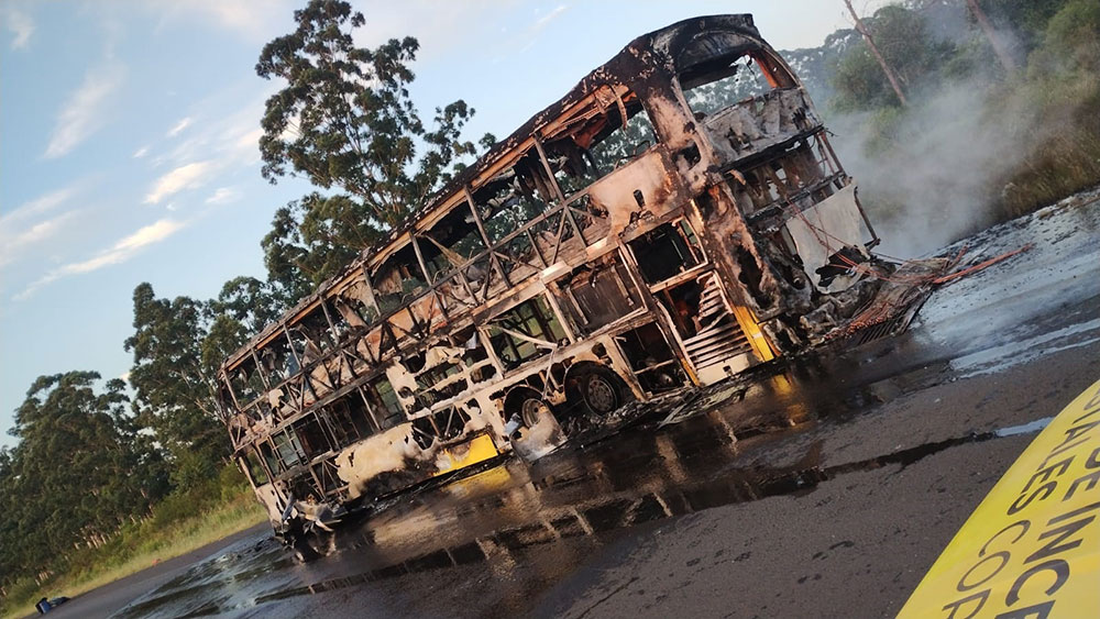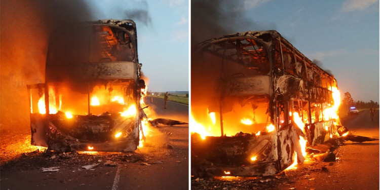 Un colectivo de larga distancia de la empresa Crucero del Norte se incendió por completo durante la madrugada de ayer en la localidad de Monte Caseros, Corrientes.