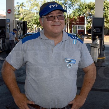 Este hombre vende a diario sandwiches, empanadas, aguas saborizadas, gaseosas, entre otros alimentos en el estacionamiento del negocio ubicado en la zona de la Rotonda de Posadas.