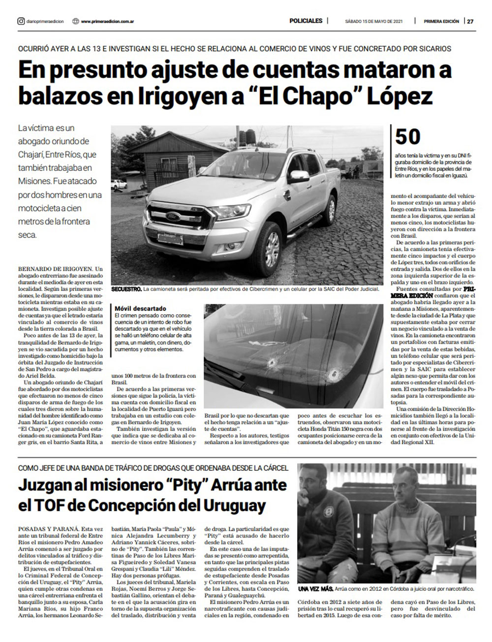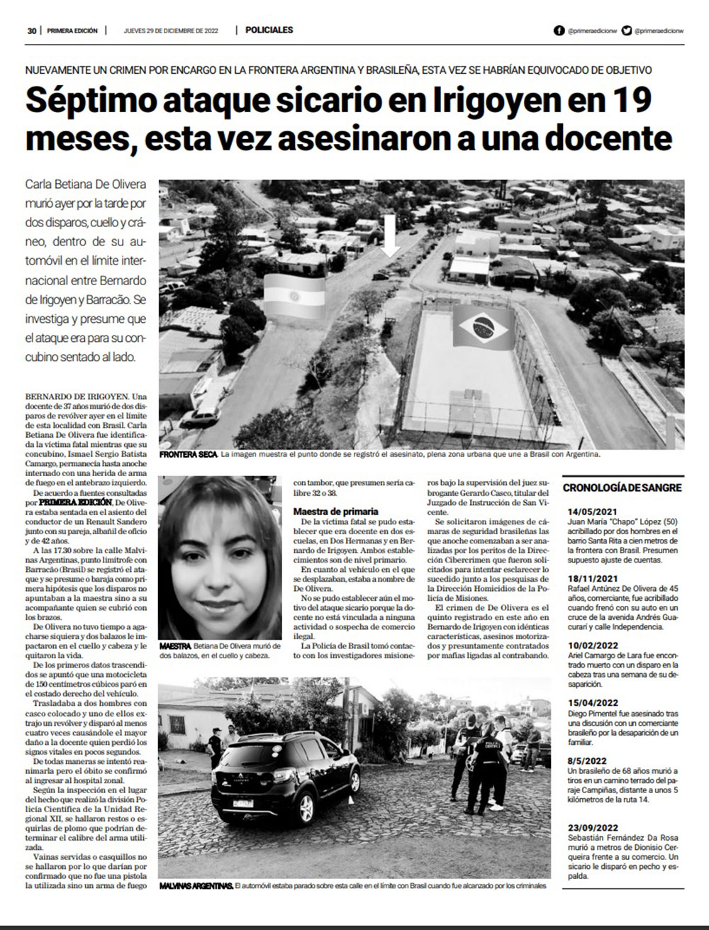 Un joven de 23 años fue acribillado a balazos el jueves por la noche en el patio de una vivienda en el barrio Vista Alegre de Bernardo de Irigoyen. César Alexander Caytano se convirtió en la novena víctima, en menos de tres años, asesinada por encargo en el contexto de actividades vinculadas al contrabando en la frontera seca que une Misiones con Brasil.