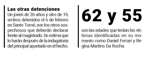 Se trata del sobrino de una de las víctimas fatales (Daniel Ferrari) quien ese mismo 2 de febrero cuando hallaron los cuerpos sin vida del dueño de la propiedad y de una empleada, fue detenido en Corrientes.