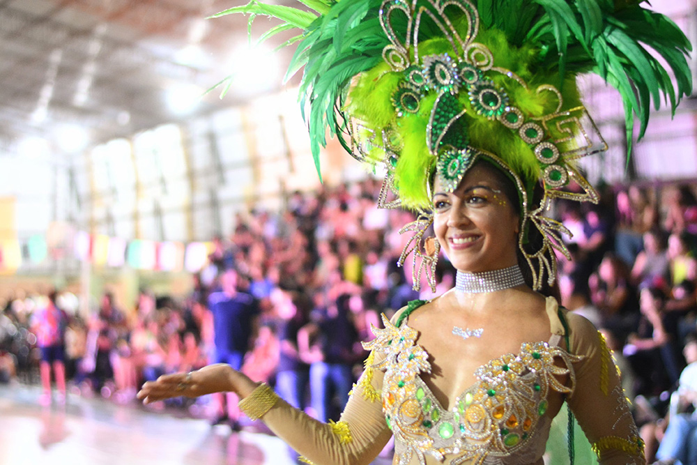 Las distintas comparsas brindaron una noche llena de color y brillo en el polideportivo municipal “Dr. Ricardo Balbín”, en lo que fue el regreso de los corsos a la ciudad luego de años