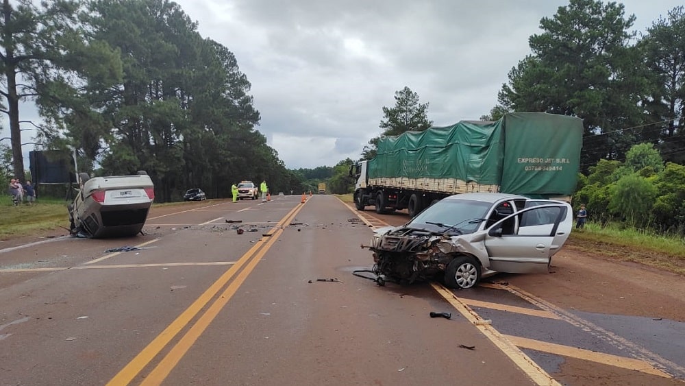 Sucedió minutos antes de las 18 en el kilómetro 1.478 de la citada arteria, en inmediaciones de Loma Alta (Garuhapé), donde -por causas que se trata de establecer- colisionaron un Peugeot 307 que circulaba en sentido Norte Sur y un Peugeot 207 que iba en sentido contrario y terminó en posición invertida.