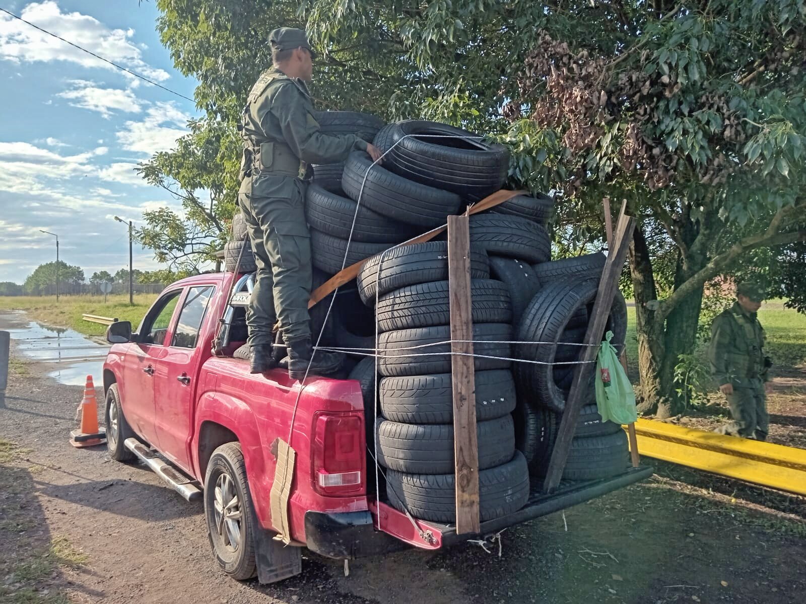 Efectivos de Gendarmería Nacional desarticularon una maniobra de contrabando de neumáticos que eran transportados a través de una camioneta que había partido desde Puerto Iguazú y se dirigía a La Rioja.