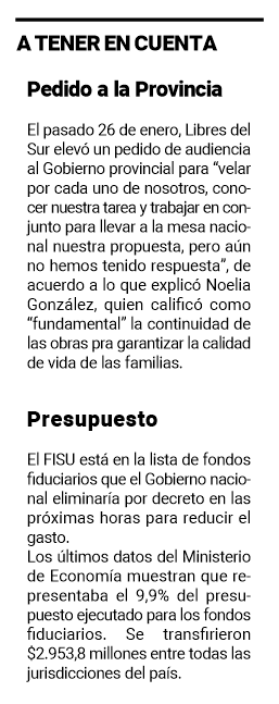 Pero todo ello quedó en stand by por el congelamiento de fondos por parte de la Nación desde diciembre.