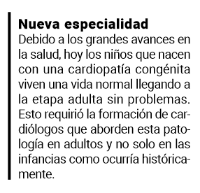 A raíz de estos avances, también se creó una especialidad nueva en el país que es la de cardiopatía congénita del adulto. “Hace 50 años nacía un chico con una cardiopatía grave, lo más frecuente es que esos pacientes fallecieran. Desde hace diez años en adelante, esos chicos sobreviven y crecen de forma natural, son adultos, llegan a formar familias. Entonces hay que hacer una transición entre el cardiólogo infantil, que es el especialista en las cardiopatías congénitas, y el cardiólogo para adultos que no tiene mucha expertiz porque históricamente nunca abordó esta enfermedad”, manifestó Benmaor.