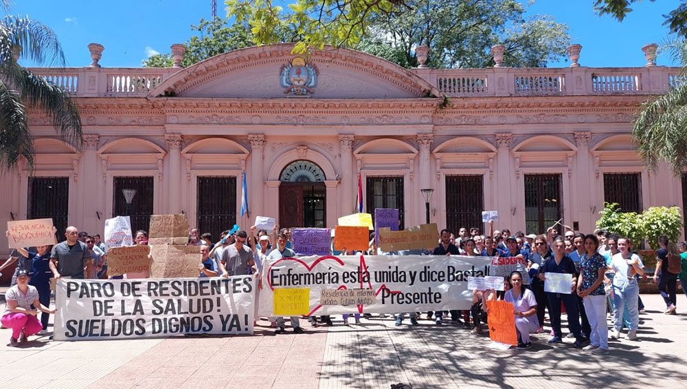 Este miércoles se cumple el séptimo día de paro de los residentes de salud en la provincia de Misiones, quienes persisten en su reclamo por salarios más justos. A pesar de las declaraciones del subsecretario de Recursos Humanos de Salud Pública, Rodolfo Fernández Sosa, que días atrás afirmó que “no hay posibilidades de mejorar la propuesta salarial para los residentes” y agregó “no habrá ninguna propuesta”, los manifestantes llevaron su protesta a la plaza 9 de Julio al frente de la Casa de Gobierno misionera.