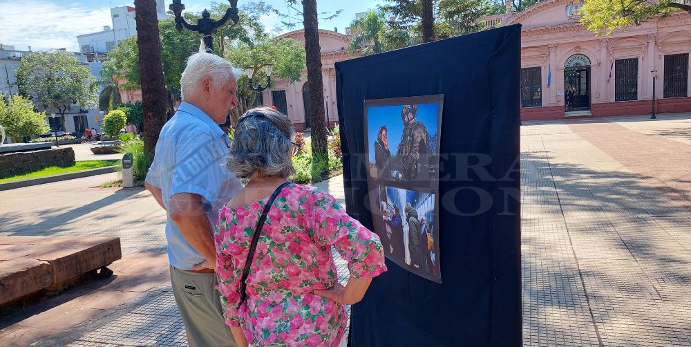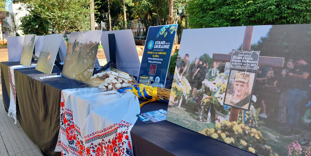 Descendientes ucranianos e integrantes de la Asociación Cultural Ucraniana “27 de Agosto” se congregaron este sábado 24 de febrero en la Plaza 9 de Julio de Posadas con una exposición de fotos alusivas a la guerra en Ucrania.