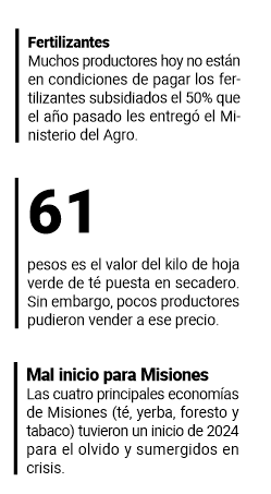 Por todo ello, hoy los galpones tealeros están repletos de hoja verde y muchos productores se vieron en la dura decisión de tirar sus brotes por falta de compradores.