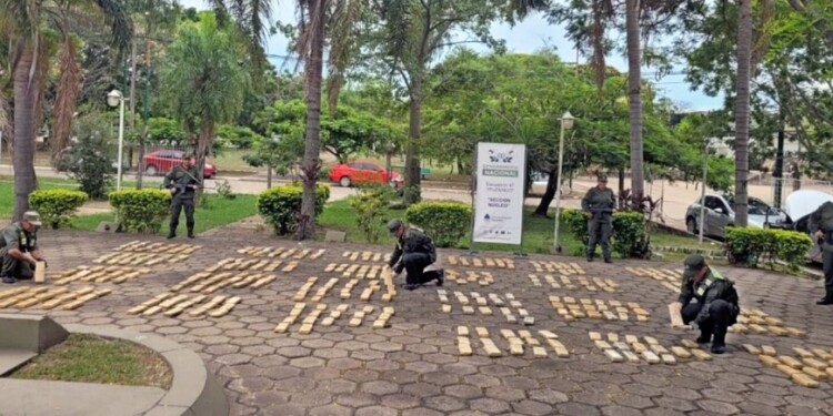 Como resultado del operativo bautizado como “Mary Jane”, GN confiscó cerca de 350 kilos de marihuana distribuidos en 420 paquetes rectangulares escondidos en una camioneta.