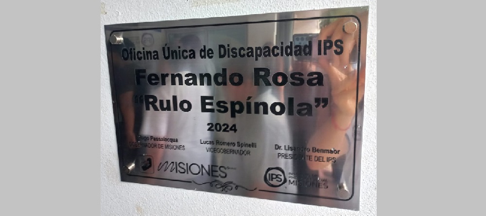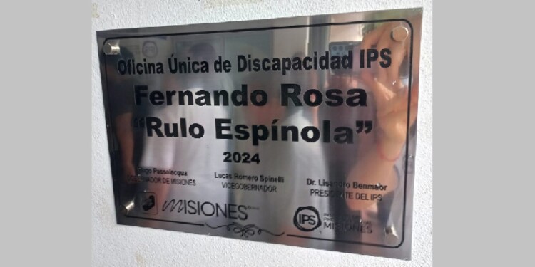 Este miércoles se llevó adelante en Posadas una ceremonia donde se descubrió una placa conmemorativa en homenaje al artista misionero, Fernando Rosa, bautizando con su nombre a la Oficina Única de Discapacidad del Instituto de Previsión Social (IPS) de Misiones,