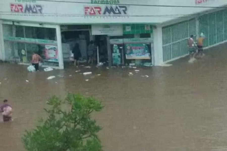 El hecho quedó filmado y rápidamente se viralizó en las redes. En las imágenes se puede ver como varias personas salen con bolsas y productos, mientras caminan con el agua hasta las rodillas.
