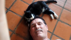 Ahora Michi, “solo sale afuera si la alzo y la dejo afuera pero ella pide para entrar” y encantado confiesa que “a los 61 años por primera vez tengo gato”. Algo que ella elige hacer es lamerle la cabeza a su nuevo amo y él confiesa que: “es relajante”. ¡A disfrutarla! Gracias Luis por compartir.