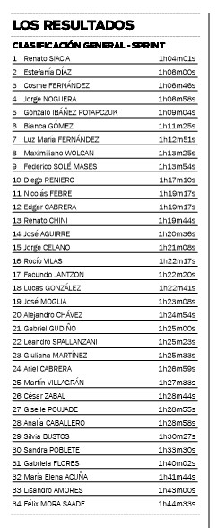 En cuanto al top ten de la clasificación general de Sprint, fue completado por el trío misionero conformado por Gonzalo Ibáñez Potapczuk, Maximiliano Wolcan y Federico Solé Mases, además del santafesino Diego Reniero, oriundo de Reconquista.