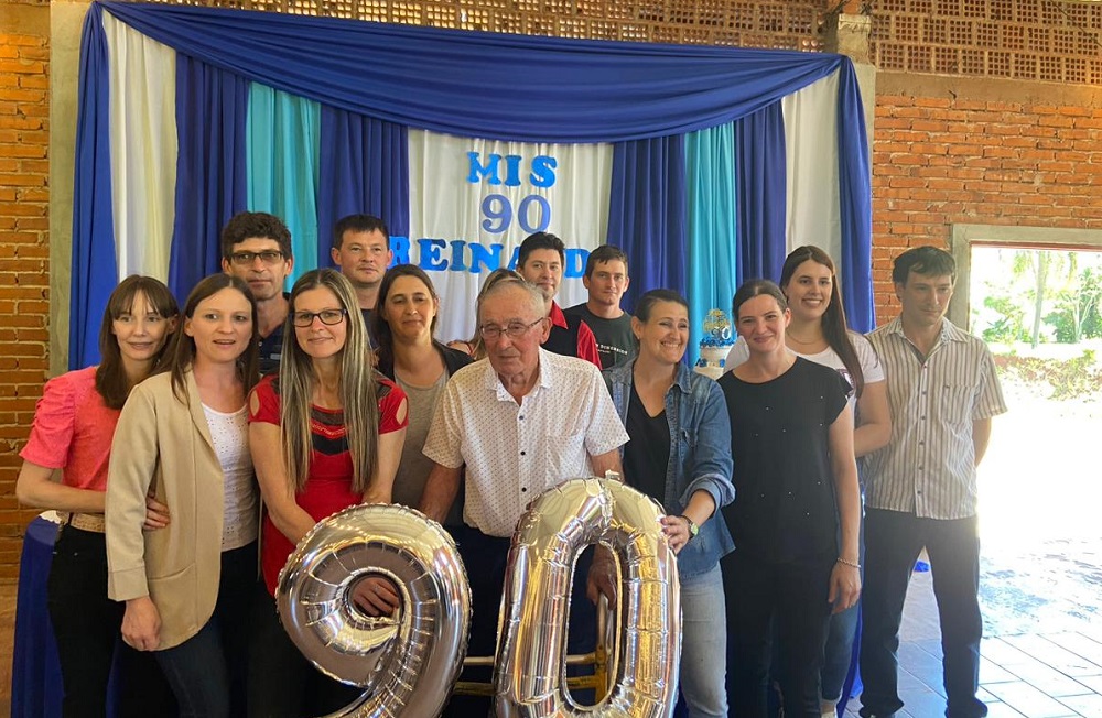 Para este hombre, llegar a los 90 “era casi imposible, pero estoy contento porque llegué, y hasta cuando Dios me permita, voy a seguir”. Los celebró en compañía de su familia y casi un centenar de invitados en el salón Santa Cecilia.