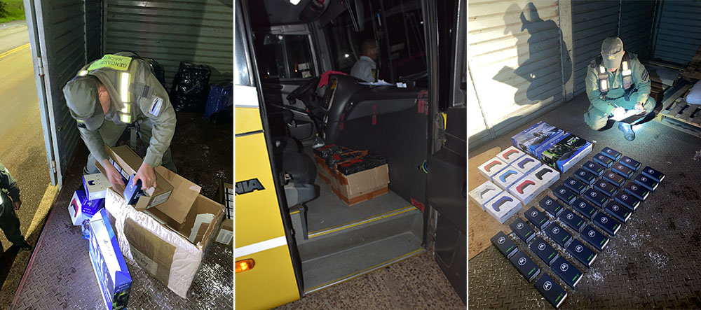 Por otra parte, gendarmes pertenecientes al Escuadrón 7 “Paso de los Libres-Cabo Misael Pereyra”, que se hallaban desplegados sobre el kilómetro 536 de la ruta nacional 14, procedieron al control de un transporte de pasajeros de larga distancia con itinerario Posadas-La Plata.