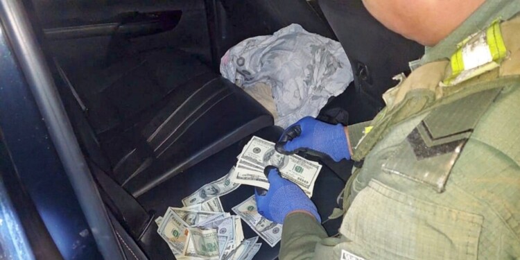 Al momento de inspeccionar el rodado, los uniformados observaron un compartimiento debajo del asiento trasero en el cual encontraron fajos de divisas extranjeras, de las cuales el conductor admitió no contar con documentación que justifique su legal procedencia y tenencia.