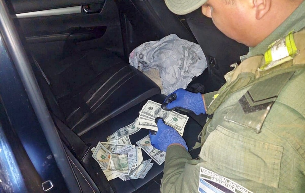 Al momento de inspeccionar el rodado, los uniformados observaron un compartimiento debajo del asiento trasero en el cual encontraron fajos de divisas extranjeras, de las cuales el conductor admitió no contar con documentación que justifique su legal procedencia y tenencia.