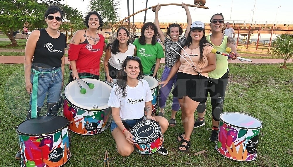 En consonancia con el Mes de la Mujer, las integrantes del grupo Paranaguá Percusión compartieron junto al público posadeño un repertorio de ritmos alegres en la costanera de posadeña. Una show previo su presentación de “ADN Tamborero”, el sábado 9, a las 22 en el escenario de la Peña Itapúa (Buenos Aires 2.056). Una verdadera fiesta que contará con destacadas artistas invitadas como Lary Lenguaza, Luli Ramírez, Anabella Sánchez, Micol y Dj Marcos Barzuck.