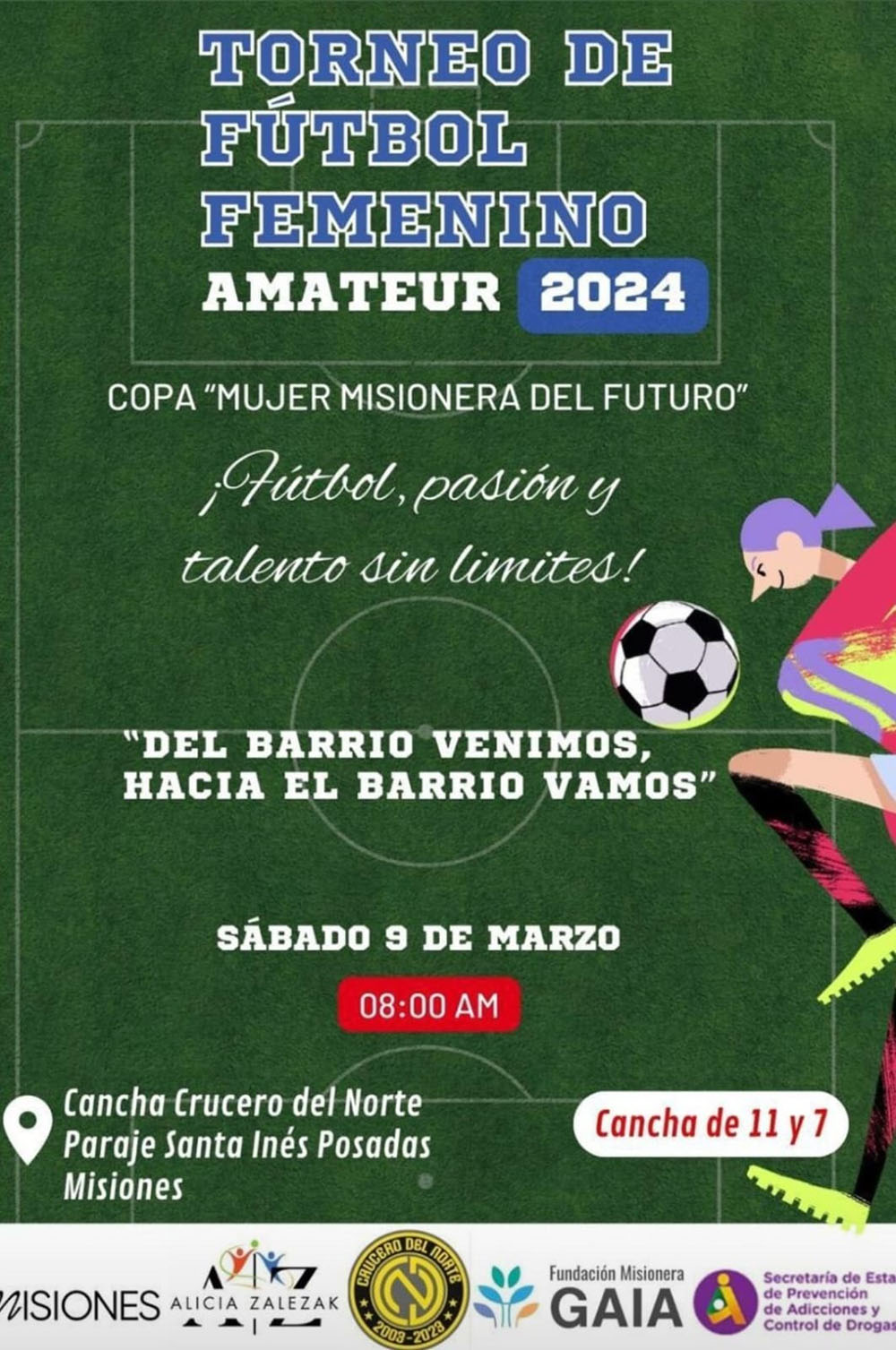 Para conmemorar el Día Internacional de la Mujer, este sábado se disputará el Torneo de Fútbol Femenino “Copa Mujer Misionera del Futuro” en las instalaciones del Club Crucero del Norte, en Santa Inés. La competencia, que iniciará a las 8 horas, contará con partidos en canchas de 7 y 11 jugadoras, y reunirá a equipos amateurs provenientes de diversos barrios de Posadas, Garupá y Candelaria.