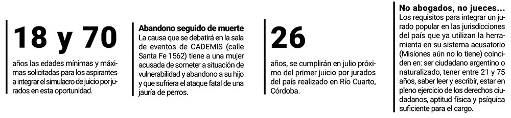 Para ello el martes próximo (de 17 a 19) en la sede del Colegio de Abogados (calle Santa Fe 1562 de Posadas) se desplegará la capacitación en “audiencias ‘Voir Dire’ para selección de jurados”, destinada a los profesionales del derecho, estudiantes y funcionarios judiciales. Será el paso preliminar para el juicio simulado del viernes, entre las 15 y 20 en la misma dirección.
