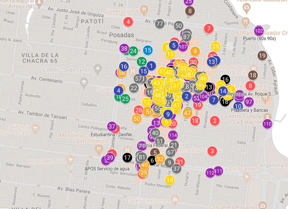 Más de 450 lugares típicos de la Posadas de las décadas de los 80 y 90´ señalados en el Google Maps presentó hoy Carlos en la cuenta de Facebook “Recuerdos posadeños de los ’90”.