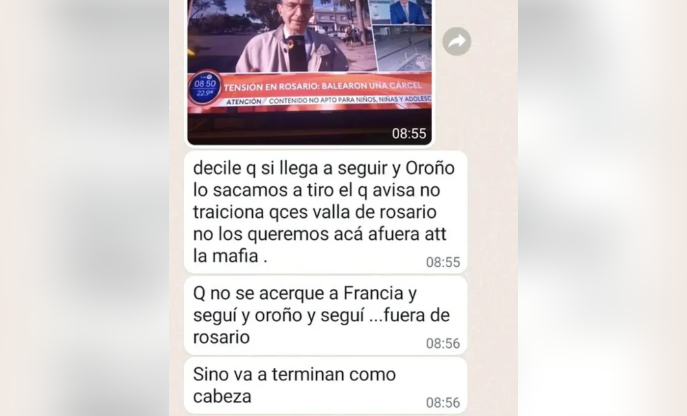 “Que no se acerque. Fuera de Rosario”, sigue el segundo mensaje. La amenaza finaliza con el repudiable caso por el asesinato del fotógrafo José Luis Cabezas en 1997 en Pinamar: “Van a terminar como Cabezas”.