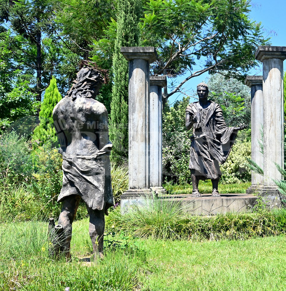 “Actualmente en el Parque Temático se trabaja con Carlos Pacheco Nittmann, también egresado a la Facultad de Arte de la ciudad. Las primeras esculturas, que son las del Jardín del Calvario, fueron hechas por Eduardo Sánchez, un escultor de Panambí, de amplia trayectoria”.