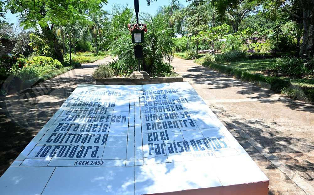 Schuvartz comentó que, después, se empieza a hacer el recorrido por las escenas del Vía Crucis por los distintos jardines pero que “todavía no están terminadas porque son realizadas gracias a las donaciones. Siempre contamos con benefactores que van financiando estas esculturas. Por el momento están intercaladas, pero más o menos va dando idea de lo que es el recorrido hasta llegar al Jardín de la Vid, una planta muy mencionada de la Biblia. Hace poco recibimos la visita del profesor y doctor en Biblia, René Krüger, quien señaló que la vid es mencionada 366 veces”.