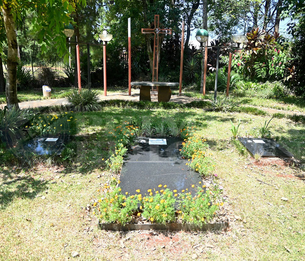 El cuerpo del padre Guillermo descansa en el Jardín de la Resurrección. A un lado fueron depositadas parte de las cenizas de John Davis, uno de sus mejores amigos y, al otro, están los restos de Mario Junior, el bebé más chiquitito que tuvo la Fundación, que padecía hidranencefalia.