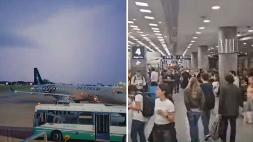 En el aeropuerto internacional de Ezeiza las condiciones fueron más benignas y solamente se cancelaron tres vuelos y dos fueron demorados. Con este escenario, donde se espera que las tormentas continúen durante todo el día, ya hay largas filas en el Aeroparque y muchos pasajeros se resguardan dentro de la terminal para cubrirse del agua.