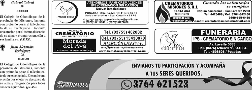 Fúnebres del Miércoles 13 de Marzo de 2024