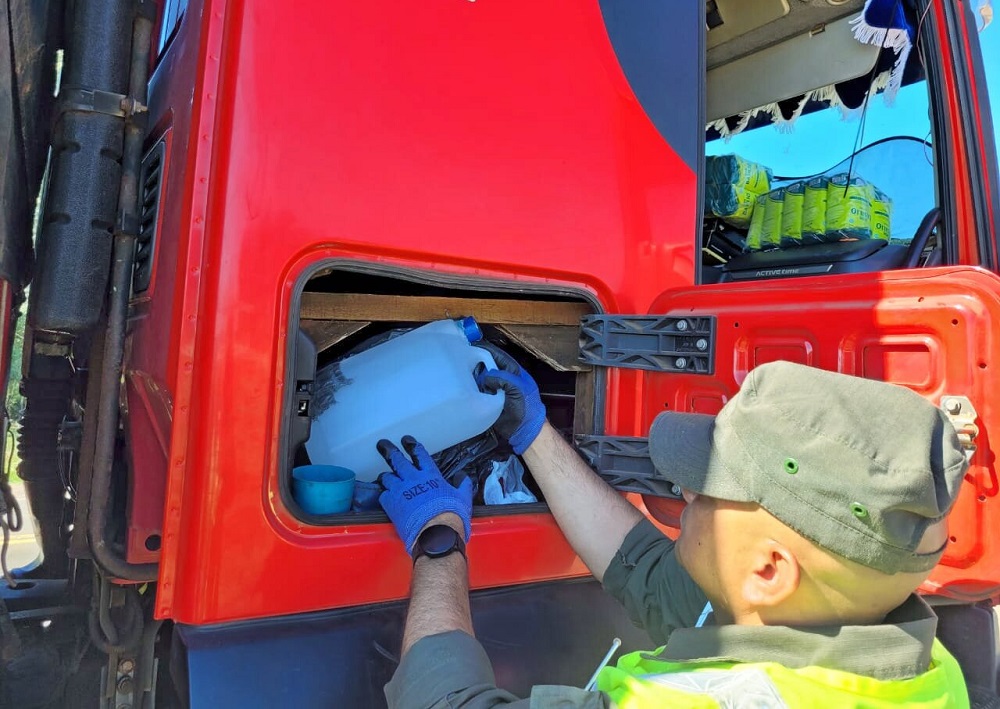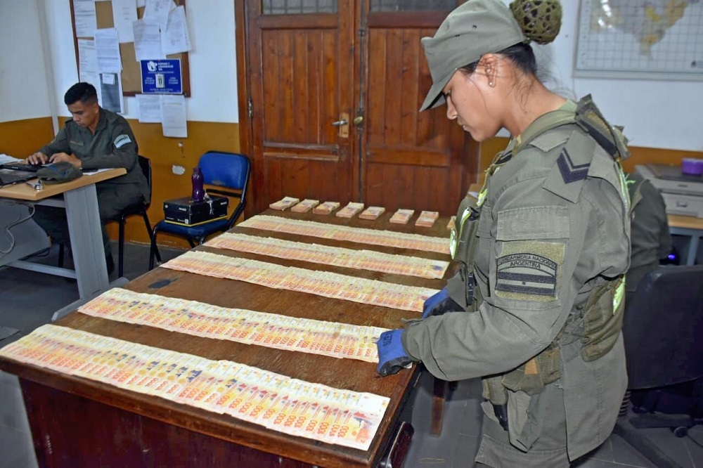 Tras la requisa de su carga de madera, que no arrojó resultados que estén fuera de la ley, cuando los uniformados revisaron la cabina se toparon con gran cantidad de dinero en efectivo y 12 bidones sin rótulos con un líquido transparente, sobre los cuales el conductor no pudo precisar su contenido.