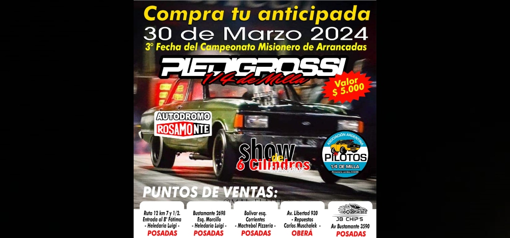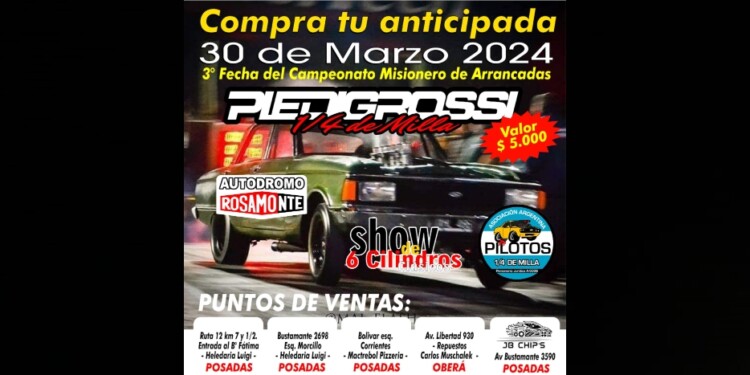 La cita será en el autódromo Rosamonte de Posadas, bajo la organización de la Asociación Misionera de Pilotos ¼ de Milla.