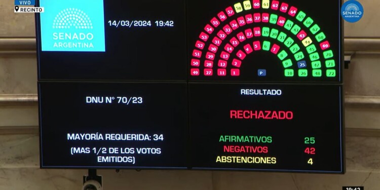 La Oficina del Presidente difundió un comunicado luego de que el Senado rechazara el DNU 70/2023, lo que representa un duro golpe para el oficialismo ya que el megadecreto establece según el Gobierno los pilares para avanzar con las reformas económicas en el país.